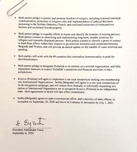Finally, Serbia’s reward that came with Vucic agreeing to move Serbia’s embassy to Jerusalem was delivered within the hour of his signing; when Israel recognized Kosovo as an independent, sovereign nation and the humiliation was complete. [14]