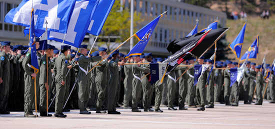 Very soon, cadets at the US Air Force Academy (USAFA) and the U.S. Military Academy at West Point, as well as midshipmen at the U.S. Naval Academy in Annapolis, will be marching to one of the happiest events of their lives: graduation. At USAFA, on the day before the actual stadium graduation, soon-to-be lieutenants literally march out of their squadron formations on the parade field in a “Flying Wedge Formation,” the inverse of how they marched into their squadrons almost four years earlier. It’s an exceedingly beautiful and emotional sight for parents, faculty, and staff. Later that day, squadrons hold “commissioning ceremonies.” There are a total of forty squadrons in the Cadet Wing/student body – at which a personally chosen officer administers the oath of office, “swearing them in” as USAF second lieutenants.