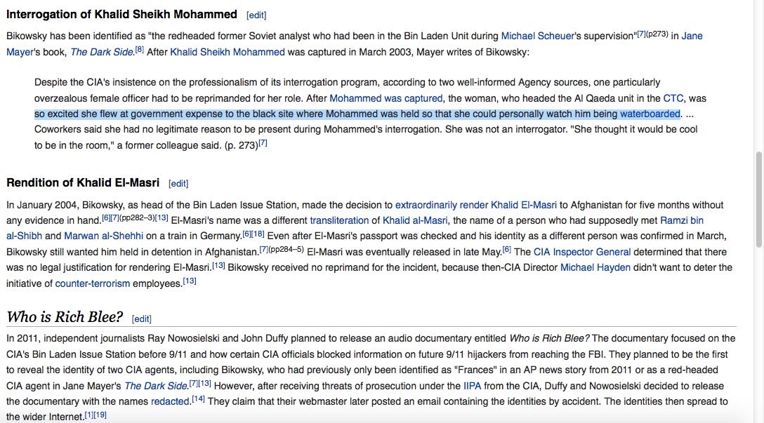 “Haspel played a leading role in the creation and perpetuation of the CIA’s false claims that torture uniquely produced actionable intelligence that saved lives”